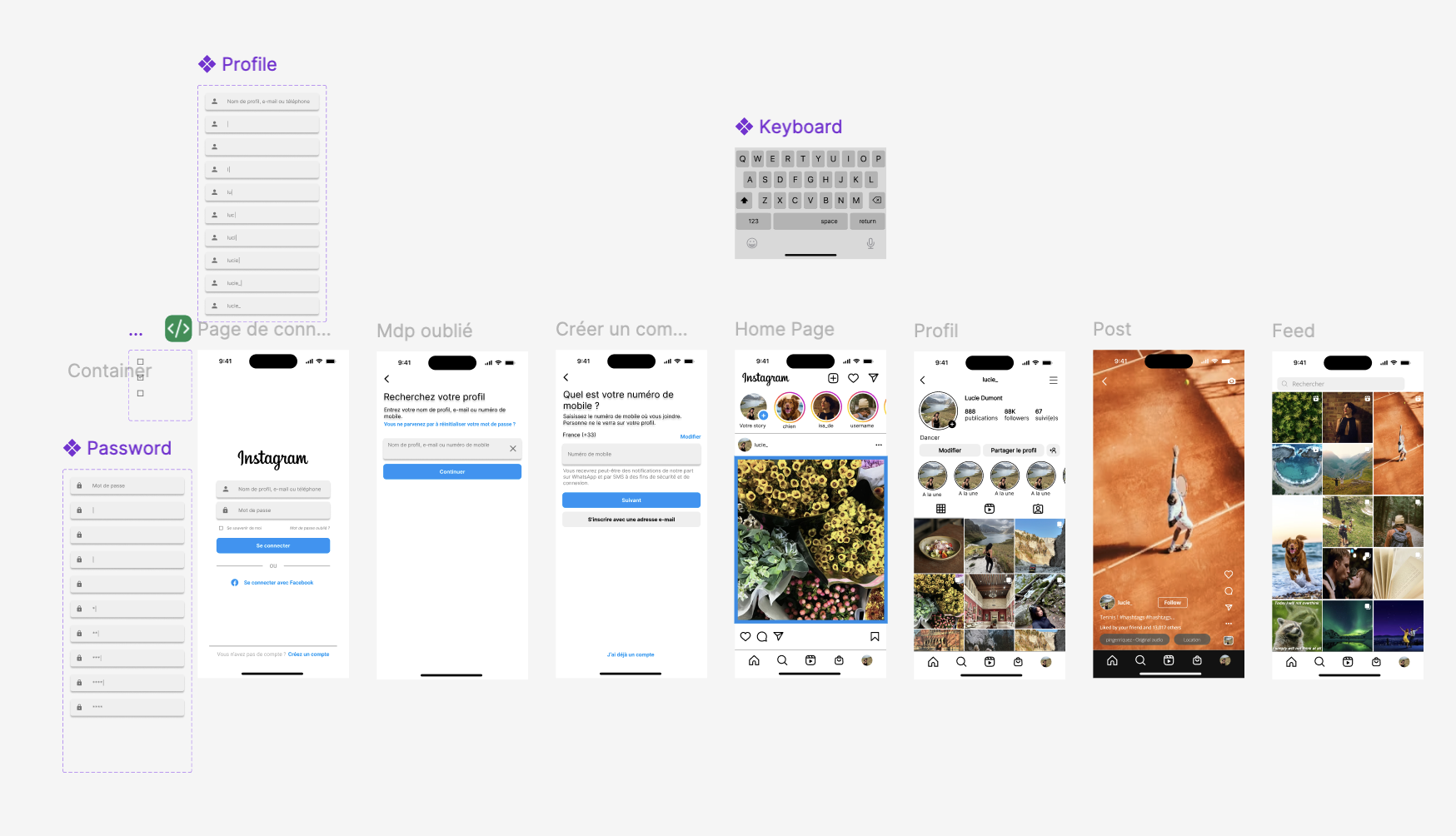 • recréer les écrans principaux (feed, stories, profil, navigation)